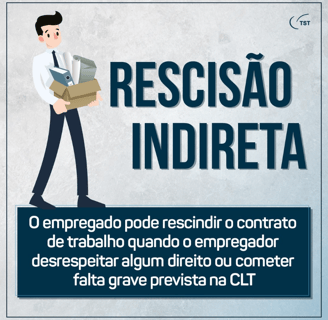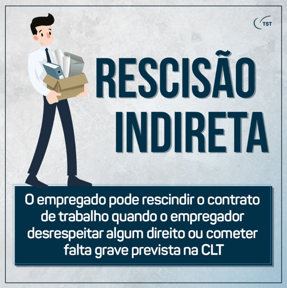 A rescisão indireta é uma ação em que o empregado/trabalhador promove contra o empregador da empresa, denunciando a ocorrência de faltas graves cometidas pelo empregador.